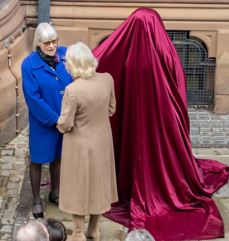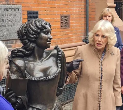 Queen Camilla unveiled a bronze statue of pioneering 17th-century author and spy Aphra Behn in Canterbury on February 25, 2025, located outside The Beaney House of Art and Knowledge.